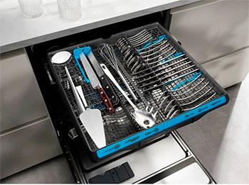 Новая технология AirDry использует для сушки естественный поток воздуха. Перед окончанием программы дверца посудомоечной машины автоматически открывается на 10 см, чтобы внутрь мог поступать воздух. Это в три раза лучше, чем сушка при закрытой дверце.
