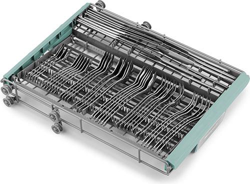 Три корзины, позволяющие разместить отдельно от остальной посуды в верхнем лотке сразу все ложки, вилки и ножи, обеспечивая при этом их наилучшее мытьё.