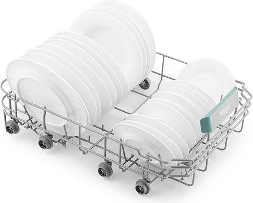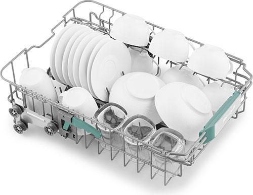 Вертикальная регулировка средней корзины по высоте, как в загруженном, так и в пустом состоянии, позволит вам буквально на лету изменять внутреннее пространство посудомоечной машины, размещая посуду наиболее эргономичным образом.