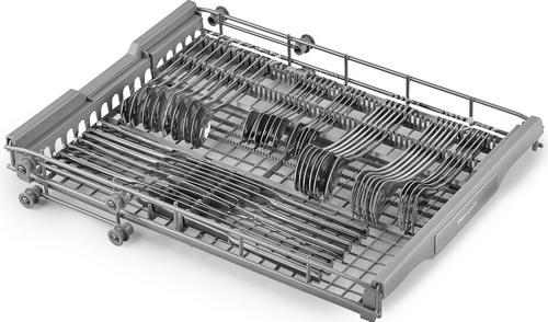 Три корзины, позволяющие разместить отдельно от остальной посуды в верхнем лотке сразу все ложки, вилки и ножи, обеспечивая при этом их наилучшее мытьё!