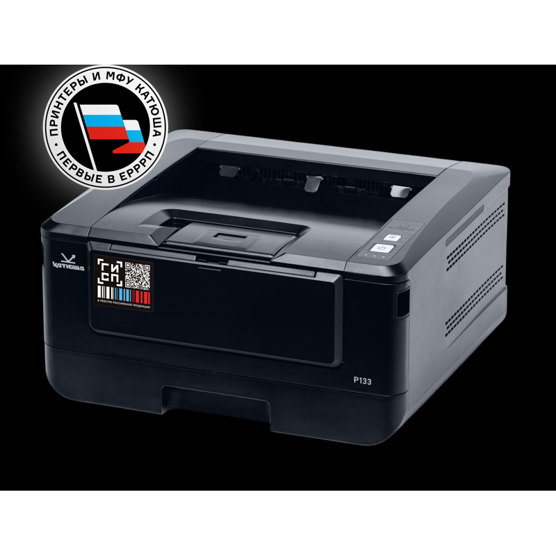 Принтер Катюша P133-256 (А4, принтер лазерный, Ч/Б, 33 стр/мин А4, двусторонняя печать 8 макс. разрешение печати 1200х1200 dpi; процессор 1000 МГц, оперативная память 256 МБ RAM, лоток подачи 250 лис
