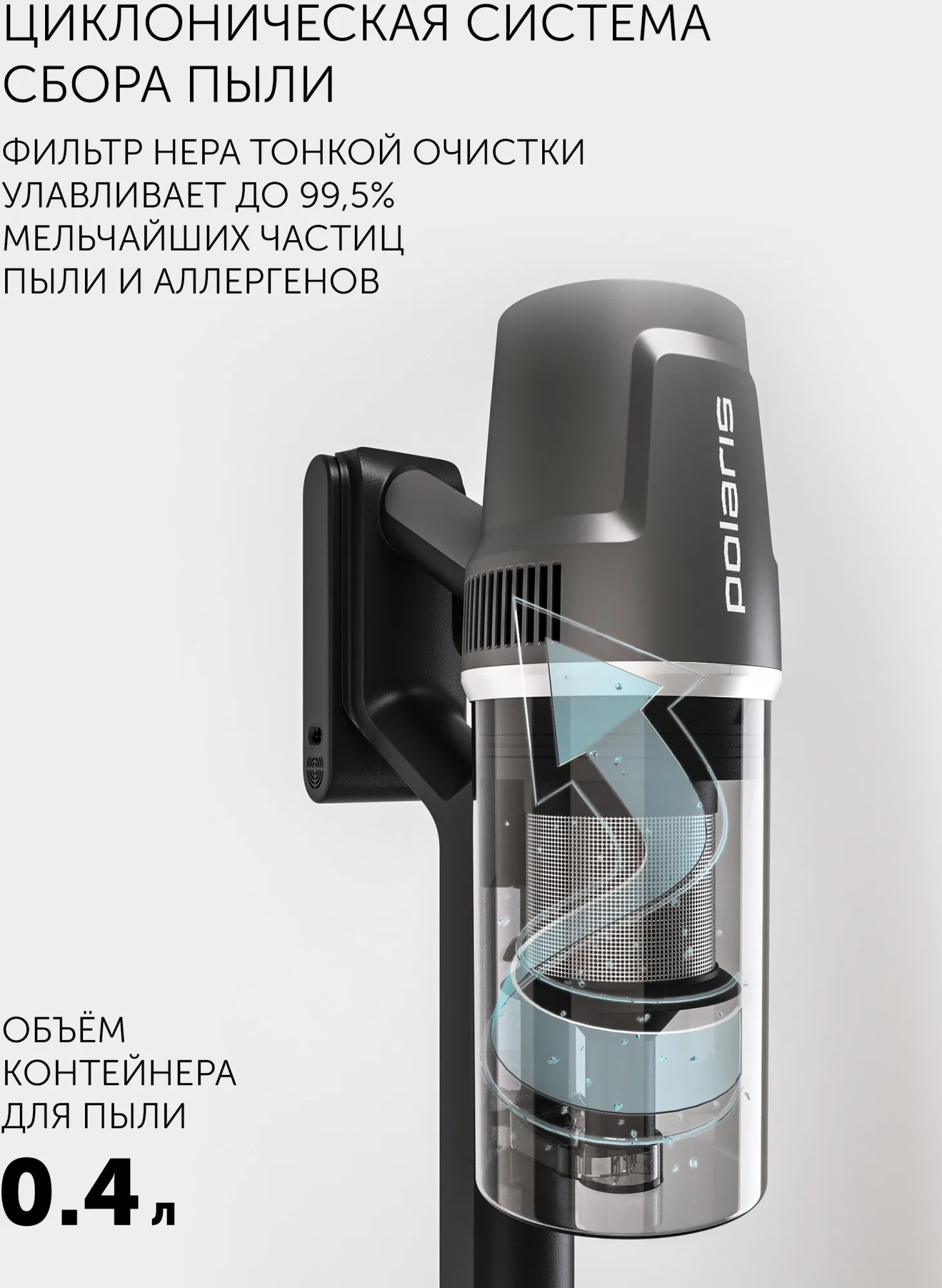 | Особенности | вертикальная парковка, индикатор заполнения пылесборника, регулировка мощности, насадка с LED подсветкой, съемный ручной пылесос, сухая и влажная уборка, подсветка зоны уборки |