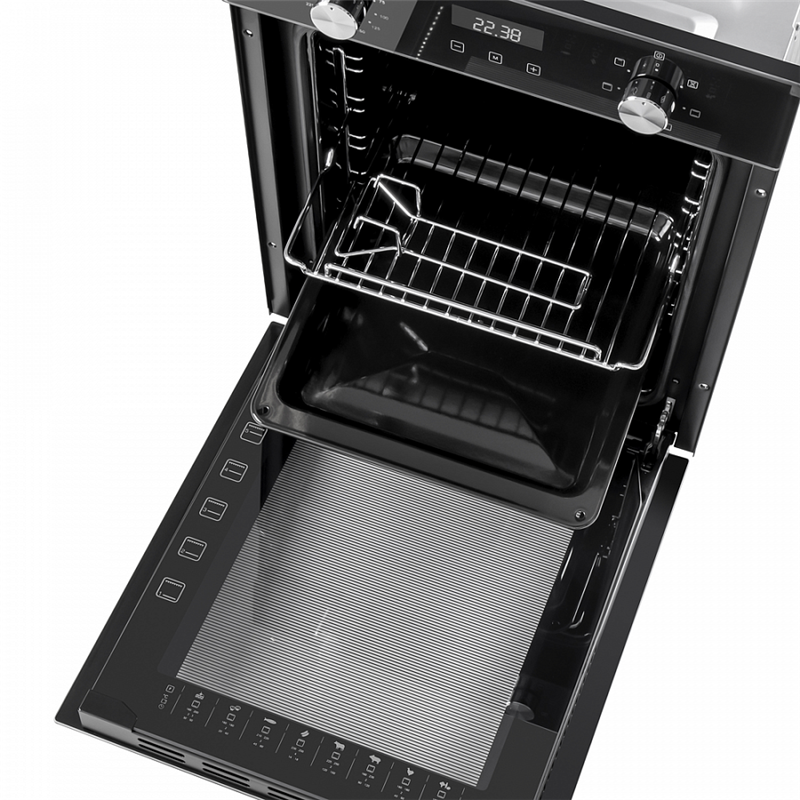 Независимый тип установки, класс энергопотребления А, 7 основных режимов, электронное управление, дисплей, двойное стекло дверцы, металлическая ручка дверцы, холодный фронт, эмаль легкой очистки, объем 51 л.