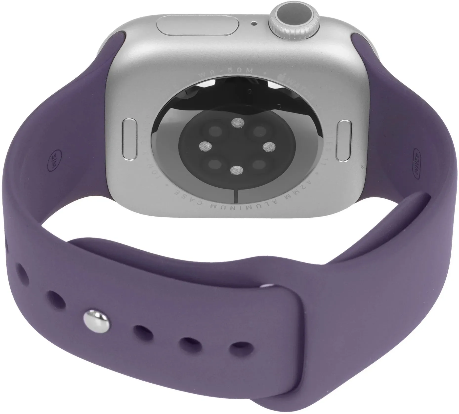 Смарт-часы Apple Watch Series 11 A3331 42мм OLED корп.серебристый Sport Band рем.фиолетовый разм.брасл.:S/M (MEU64LW/A)