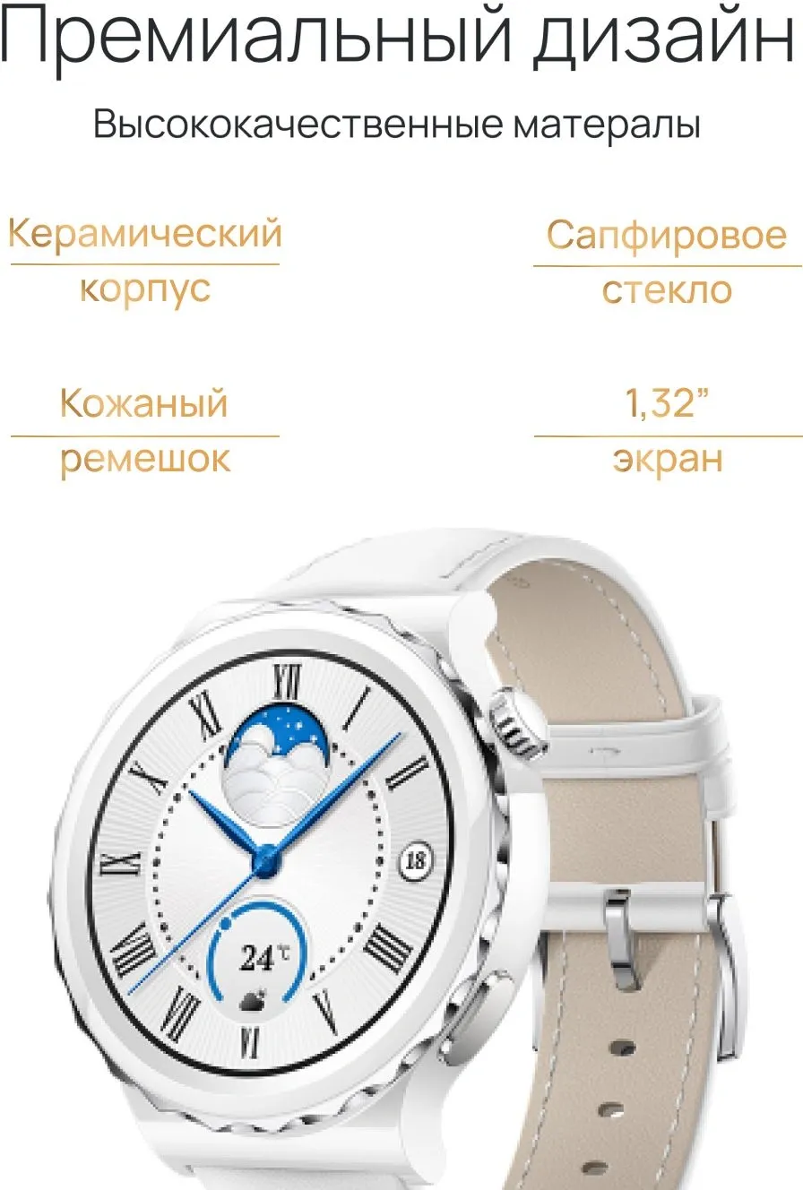 Смарт-часы Huawei Watch GT 3 Pro Frigga-B19V 43мм 1.32" AMOLED корп.белый/серебристый рем.белый разм.брасл.:130-190мм (55028857)