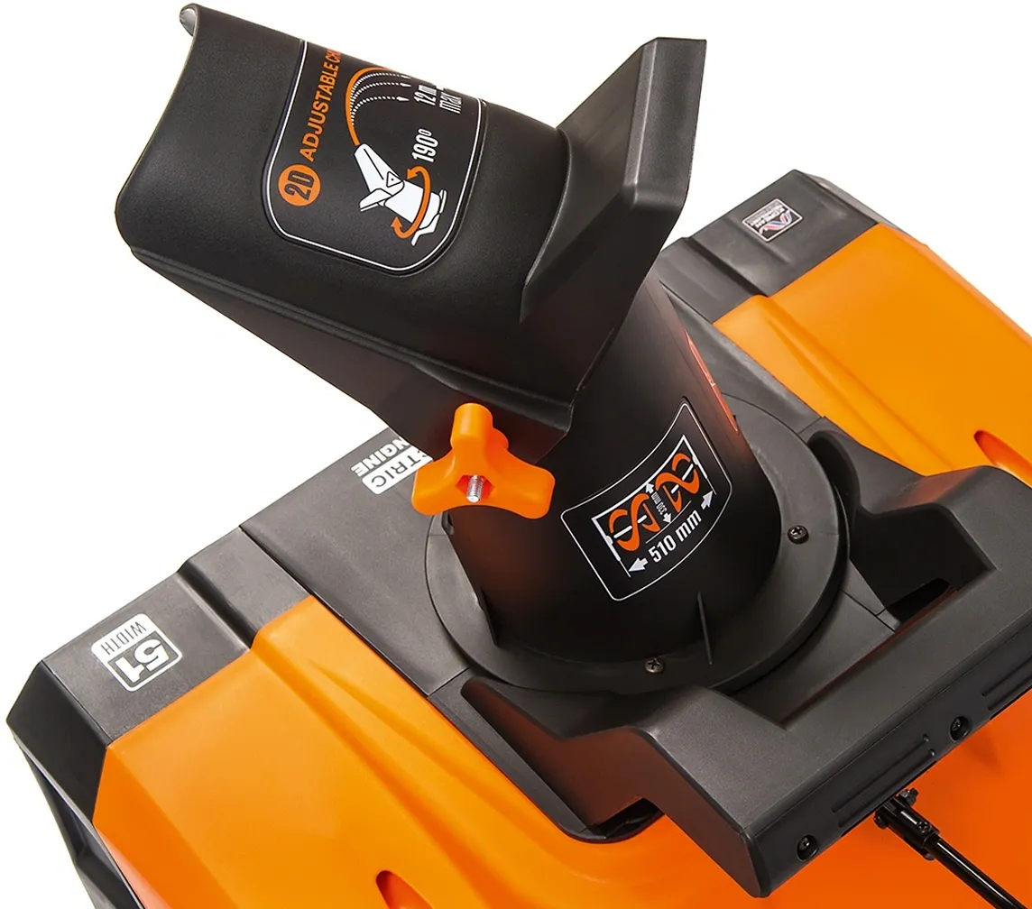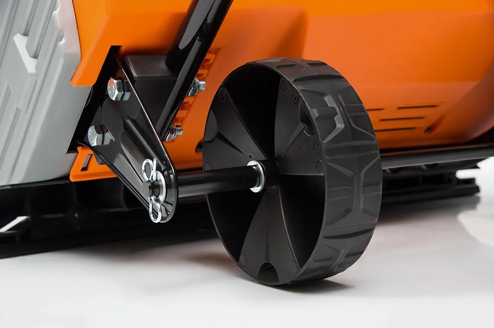 | Особенности | Мощный электрический двигатель DAEWOO. Резино-металлические шнеки. Система привода GRAB and GO. Ударопрочный корпус ABS. Контроль присутствия оператора. |