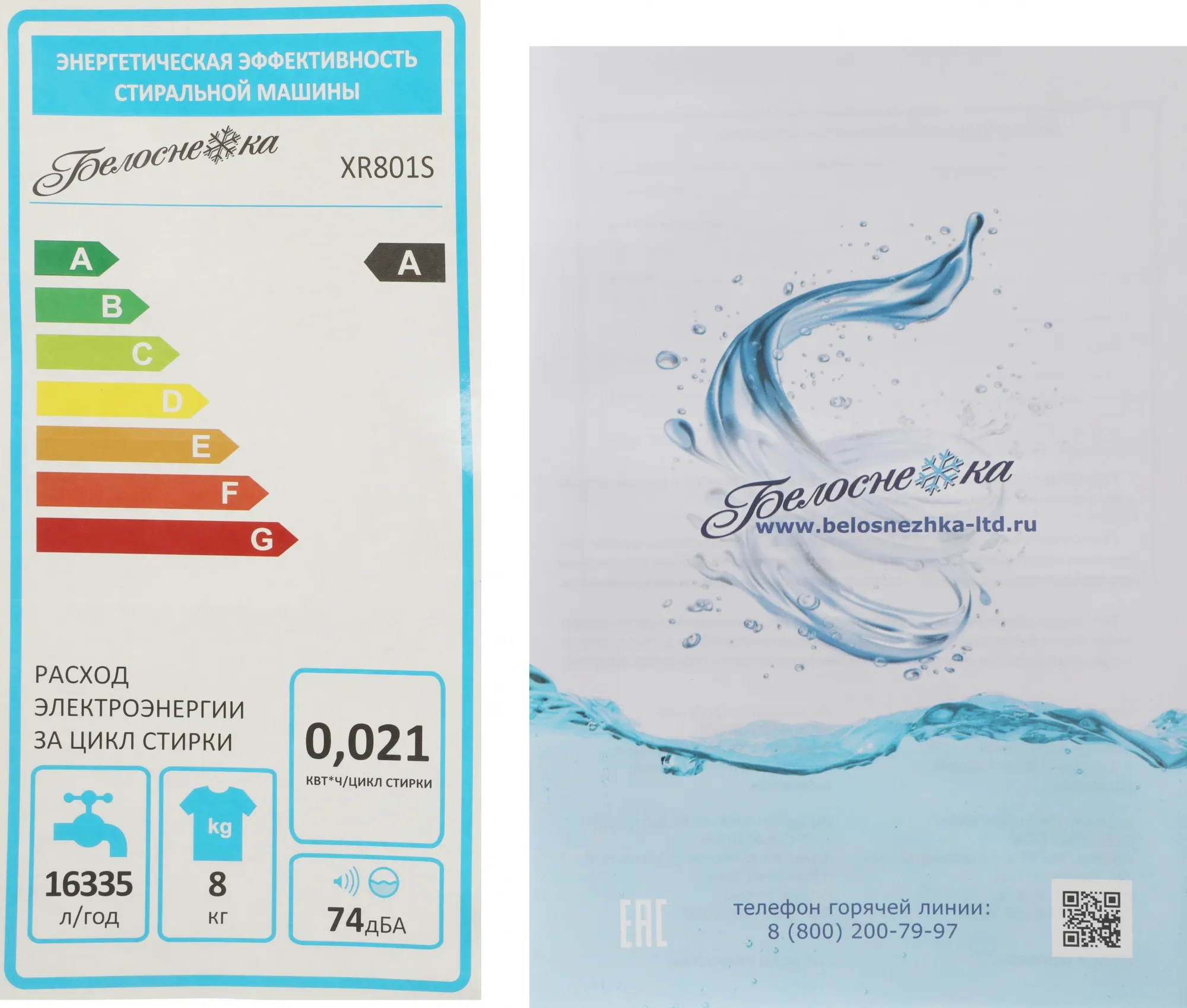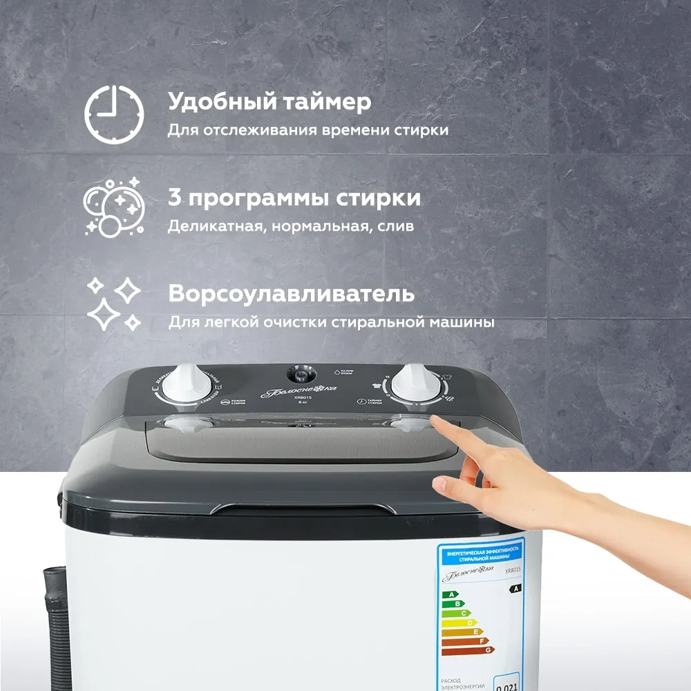 Стиральная машина Белоснежка XR801S класс: A загр.вертикальная макс.:8кг белый