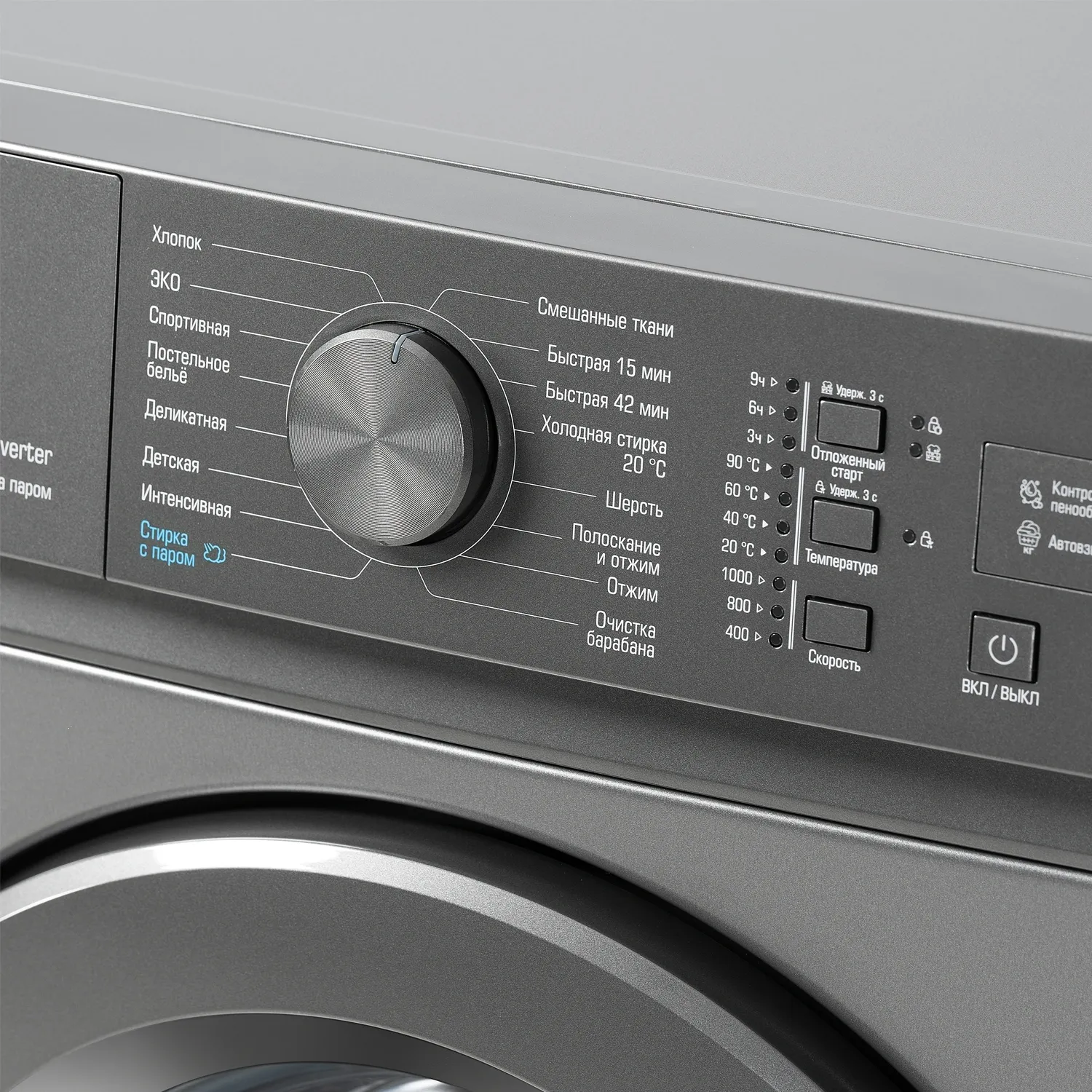 | Безопасность и управление | блокировка от случайного нажатия, защита от детей, контроль дисбаланса, контроль уровня пены, таймер отсрочки запуска |