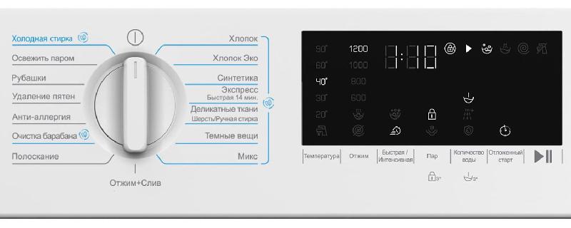 Регулируемая скорость отжима: 1200/1000/800/600/без слива