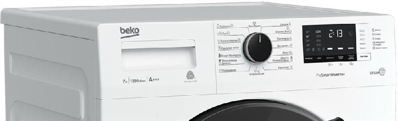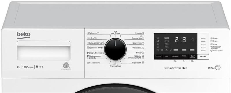 (ВхШхГ)84х60х45см.Цвет белый.Класс энергопотребления A -20%.Максимальная загрузка 7 кг.Максимальная скорость отжима 1200 об/мин.Класс отжима В Потребление электроэнергии 1.05 кВт.Расход воды 52 л.Уровень шума при стирке 63 дБ(А).Количество программ стирки 15.Дисплей Цифровой дисплей.Отложенный старт 0-19 ч.Обратный отсчет/Индикация времени до конца цикла.Сигнал окончания стирки.Блокировка от случайного нажатия/Защита от детей.Регулируемая скорость отжима 1200/1000/800/600.Электронный контроль дисбаланса.Инверторный мотор ProSmart .Технология обработки паром SteamCure.