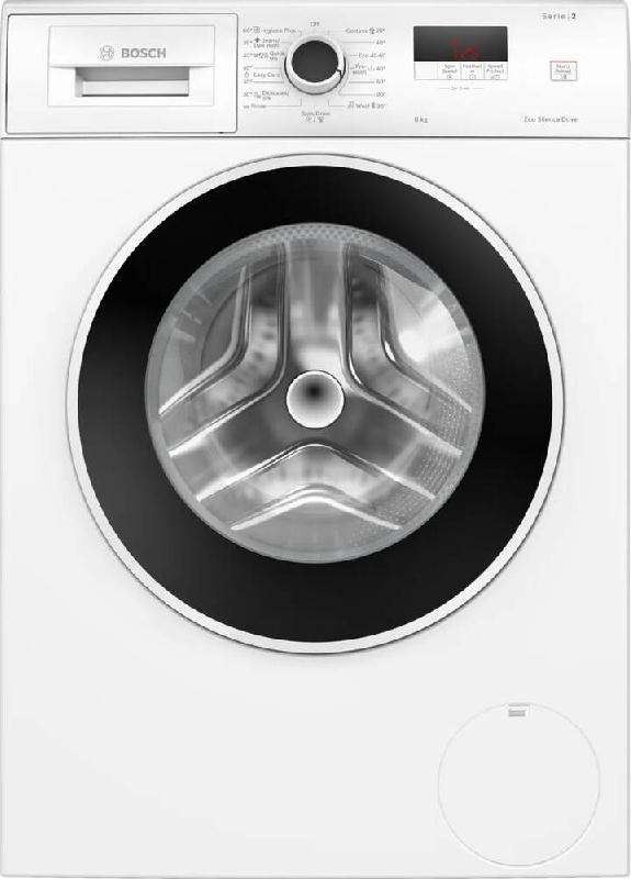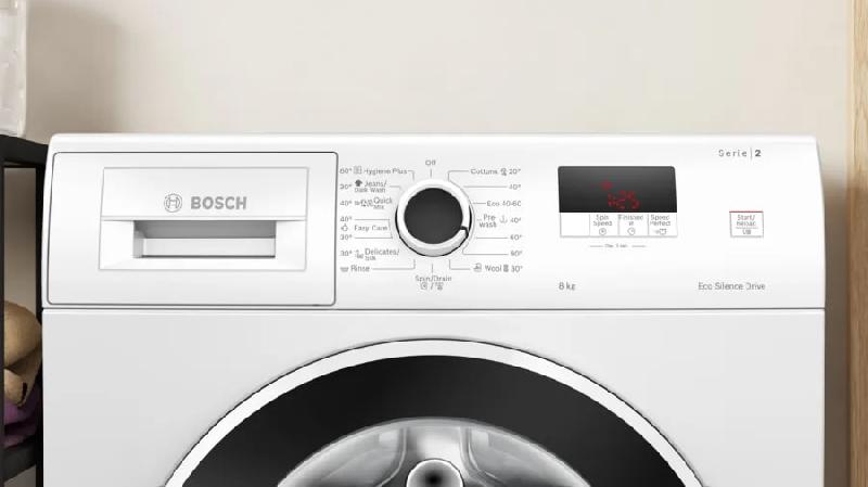Стиральная машина Bosch WGE03200BY имеет современный белый корпус, выполненный в лаконичном стиле серии Serie 2, гармонично вписывается в интерьер любой прачечной или ванной комнаты. Высота 84.8 см и стандартная ширина 59.8 см создают удобный встроенный в ряд предмет быта силуэт, а глубина 58.8 см обеспечивает компактность при сохранении вместительности барабана 65 л. Конструкция опирается на продуманную систему AntiVibration, которая снижает вибрации и улучшает устойчивость при высокоскоростном отжиме до 1200 об./мин., сохраняя соседние поверхности в покое и уменьшая шум.