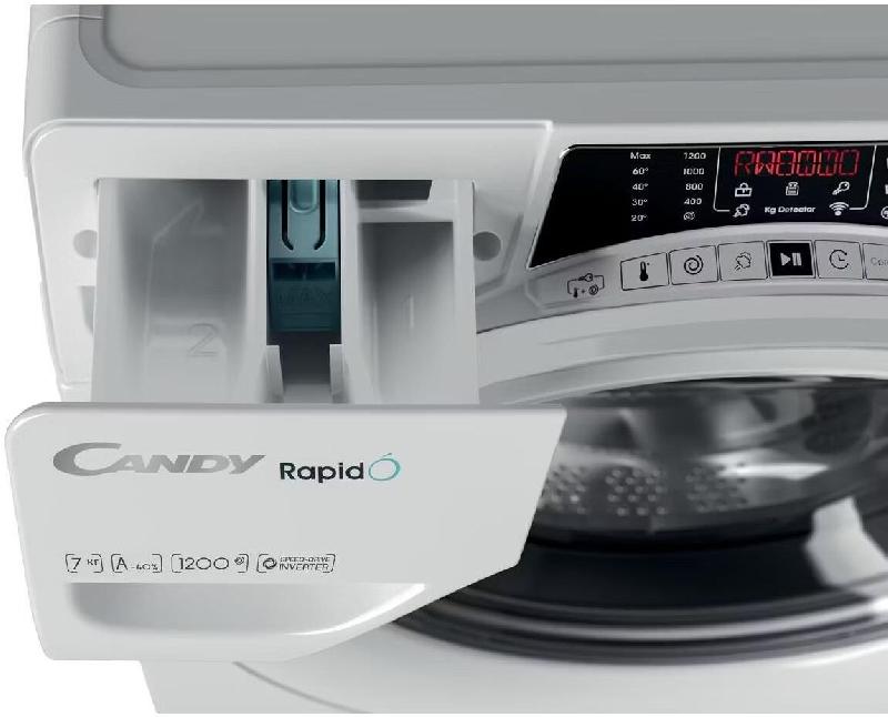 (ШхГхВ) 65х48,5х89см.Цвет белый.Белая окантовка люка. 4 D цифровой дисплей+ чёрная рамка дисплея.Загрузка 7кг.Отжим 1200 об/мин.Мотор инверторный. Управление Wi-Fi + Bluetooth.Пар.MPS+.Rapid’O имеет самое высокое расположение люка и самый большой диаметр люка на рынке. Такое расположение люка упрощает загрузку белья в барабан и его выгрузку после окончания стирки.Диаметр ширины люка 35см.Высота от пола 70,5см.Rapid’O - это самая быстрая и удобная стиральная машина, способная обеспечить стирку белья высокого класса А всего за 39 минут. Защита от перелива.Контроль пенообразования.Контроль дисбаланса.Уровень шума при стирке 51дБ.Уровень шума при отжиме 74дБ.Вес нетто (кг) 62.