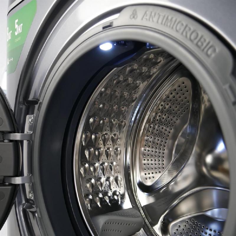 Макс. загрузка 8/5 кг (стирка/сушка) Макс. скорость отжима 1400 об/мин Объем барабана 54 л Класс А+++ Мощность 2000/1600 Вт (стирка/сушка) Кол-во режимов 17 Режимы Smart, Автоматическая балансировка белья, Без звука, Блокировка от детей, Обработка паром, Очистка барабана Управление Сенсорное Диаметр 480 мм (дверца) Вес нетто 60 кг Вес брутто 65 кг Уровень шума 62/69/76 дБ (стирка/сушка/отжим) Особенности Инверторная система, Подсветка внутренней камеры, Увеличенный объем камеры, Электронный регулятор устойчивости Габариты 60 х 43 х 84.7 см Класс защиты IPx4 Класс электробезопасности I Класс эффективности отжима А Потребление воды за цикл 48 л Энергопотребление за цикл 1,05/6,45 кВт/ч (стирка/стирка+сушка) Необходимое давление в водопроводе 0,03 – 1 МПа Функция "Сушка" Есть Функция "Пар" Есть