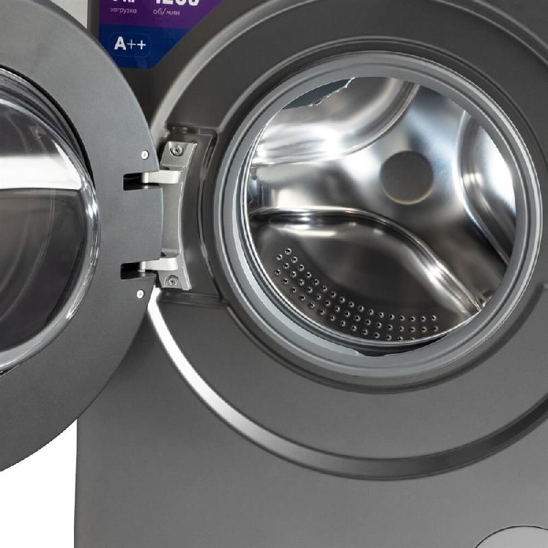 (ШхГхВ)59,5х42х84,5 см Макс. загрузка 7 кг Макс. скорость отжима 1200 об/мин Объем барабана 45 л Класс A++ Мощность 2100 Вт Кол-во режимов 10 Режимы Автоматическая балансировка белья, Блокировка от детей, Догрузка белья, Отсрочка старта, Очистка барабана Управление Сенсорное Вес нетто 52 кг Вес брутто 56 кг Уровень шума 60/76 дБ (стирка/отжим) Особенности LED-дисплей, Увеличенный объем камеры Класс защиты IPx4 Класс электробезопасности I Класс эффективности отжима B Потребление воды за цикл 44 л Энергопотребление за цикл 0,783 кВт/ч Необходимое давление в водопроводе 0,02 – 0,8 МПа Функция "Сушка" Нет Функция "Пар" Есть Гарантия 3 года