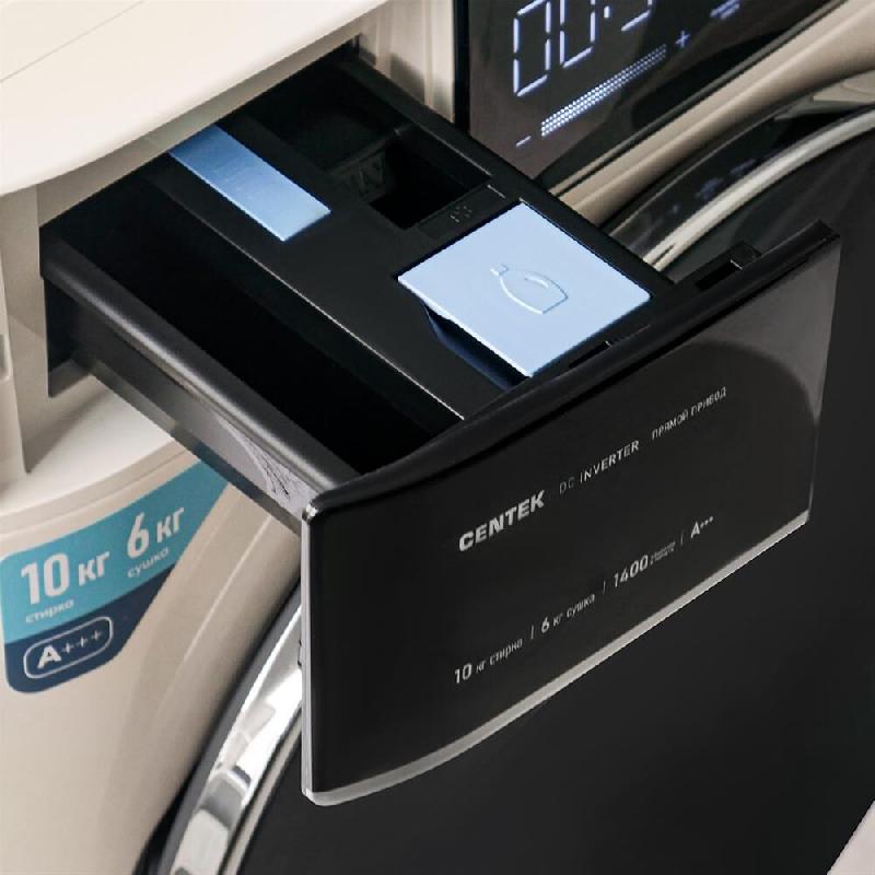 Габариты 600 х 487 х 847 мм Макс. загрузка 10/6 кг (стирка/сушка) Макс. скорость отжима 1400 об/мин Объем барабана 64 л Класс А+++ Мощность 2000/1600 Вт (стирка/сушка) Кол-во режимов 10 Режимы Автодозирование средств, Блокировка от детей, Отсрочка старта Управление Сенсорное Вес нетто 68 кг Вес брутто 73 кг Уровень шума 62/69/76 дБ (стирка/сушка/отжим) Особенности Увеличенный объем камеры Класс защиты IPx4 Класс электробезопасности I Потребление воды за цикл 75 л Энергопотребление за цикл 1,1 кВт/ч Необходимое давление в водопроводе 0,03 – 1 МПа Функция "Сушка" Есть Функция "Пар" Есть Гарантия 3 года