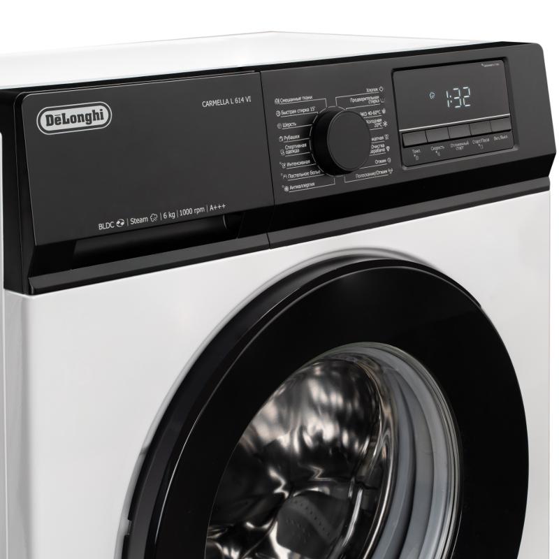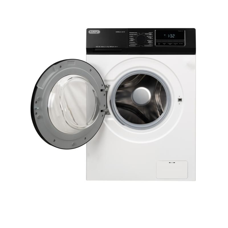 Стиральная машина Delonghi/ Стиральная машина Delonghi, глубина 45 см, 1000 об/мин, загрузка 6 кг, 16 программ, инверторный BLDC мотор, LED дисплей, электронное управление, отсрочка запуска, пар, дозагрузка белья, очистка барабана, энергоэффективность А+++, цвет белый