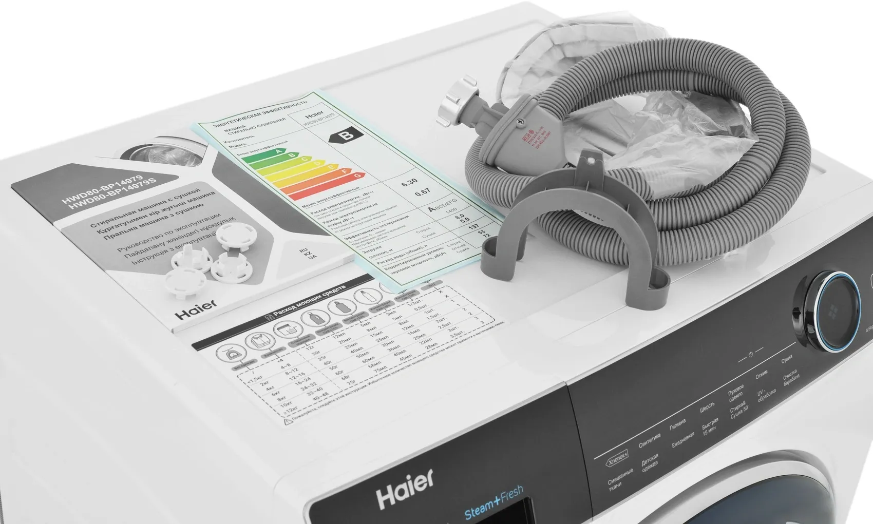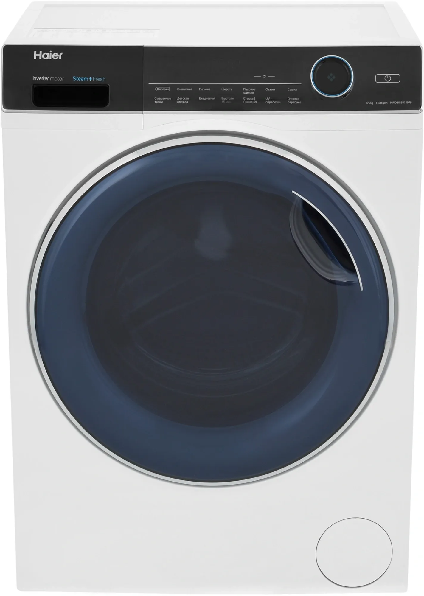 | Программы | Сушка, Синтетика, Смешанные ткани, Шерсть, Ежедневная стирка, Экспресс-стирка 15 мин, Отжим, Гигиена, Детская одежда, Хлопок+, Очистка барабана, UV обработка, Пуховое одеяло, Стирка&Сушка 59' |