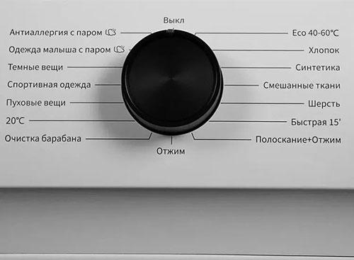 | Программы | Хлопок, Шерсть, Быстрая стирка, Спортивная одежда, Микс. Специальные программы: Антиаллергия, Детская одежда, Суперчерное, Есо 20°С, Быстрая 15', Пуховые вещи, Освежение паром, Eco 40-60°С |