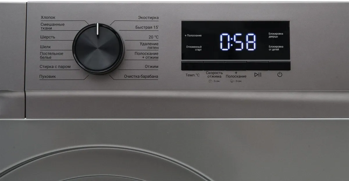 | Безопасность и управление | блокировка от случайного нажатия, дисплей, защита от детей, защита от перегрева, защита от протечек, контроль уровня пены, самодиагностика неисправностей, таймер отсрочки запуска |