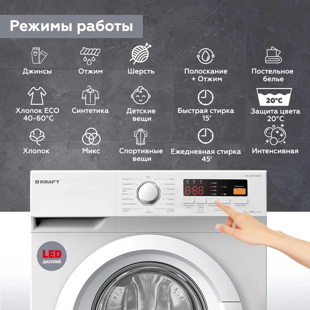Стиральная машина Kraft KF-MD 7104 W класс: A загр.фронтальная макс.:7кг белый