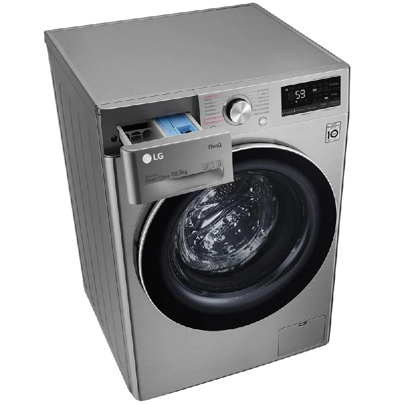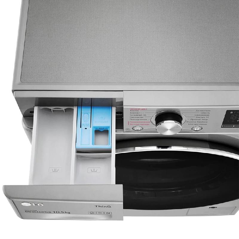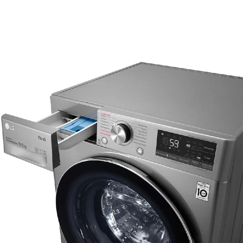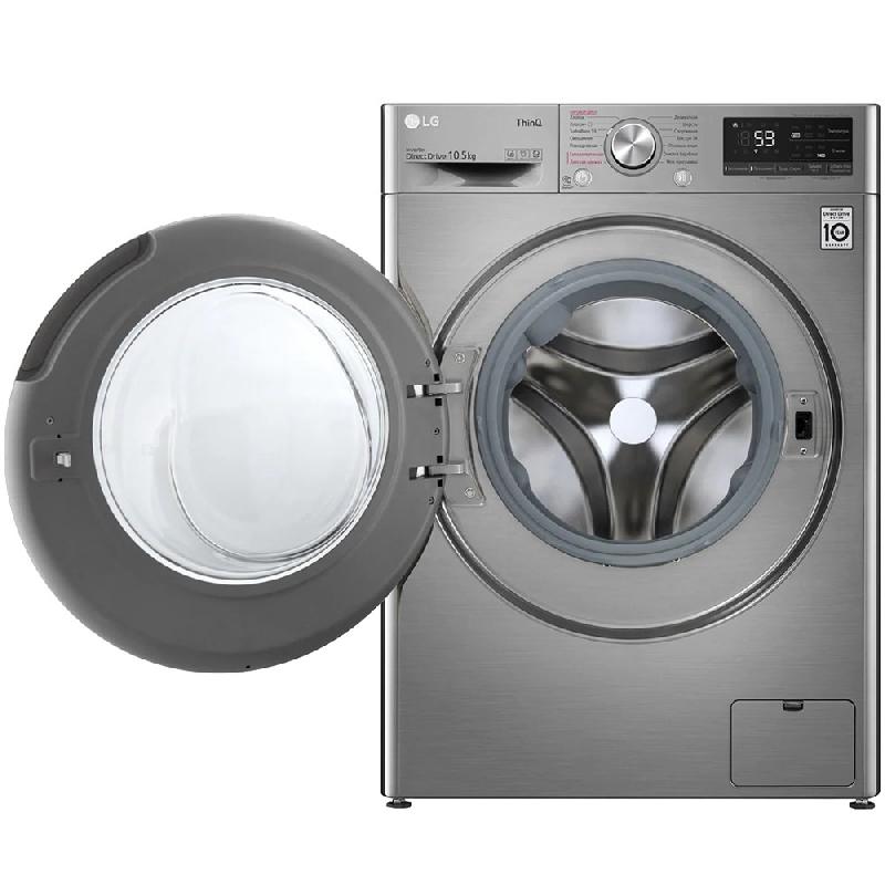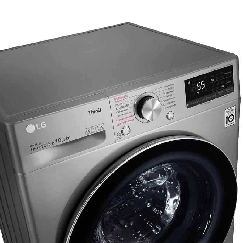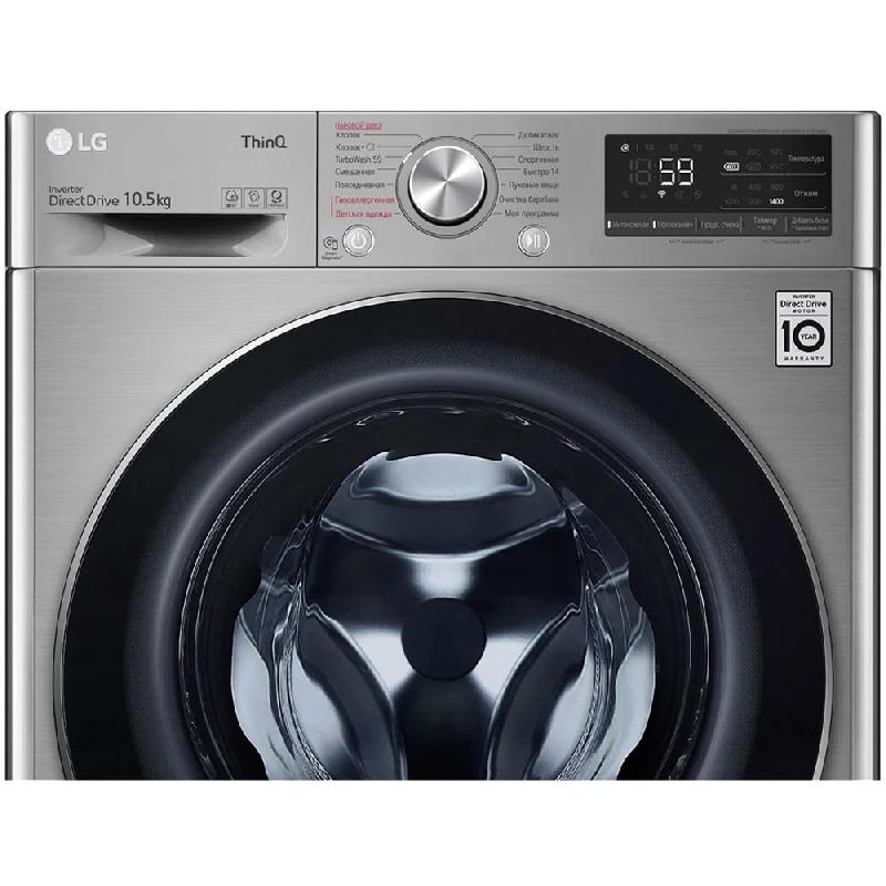 Стиральная машина LG Electronics/ Полноразмерная стиральная машина с технологией AI DD, 85x60x56, загрузка фронтальная, 10.5кг, до 1400 об/мин при отжиме, функция пара, дисплей, цвет: серебристый, люк черный