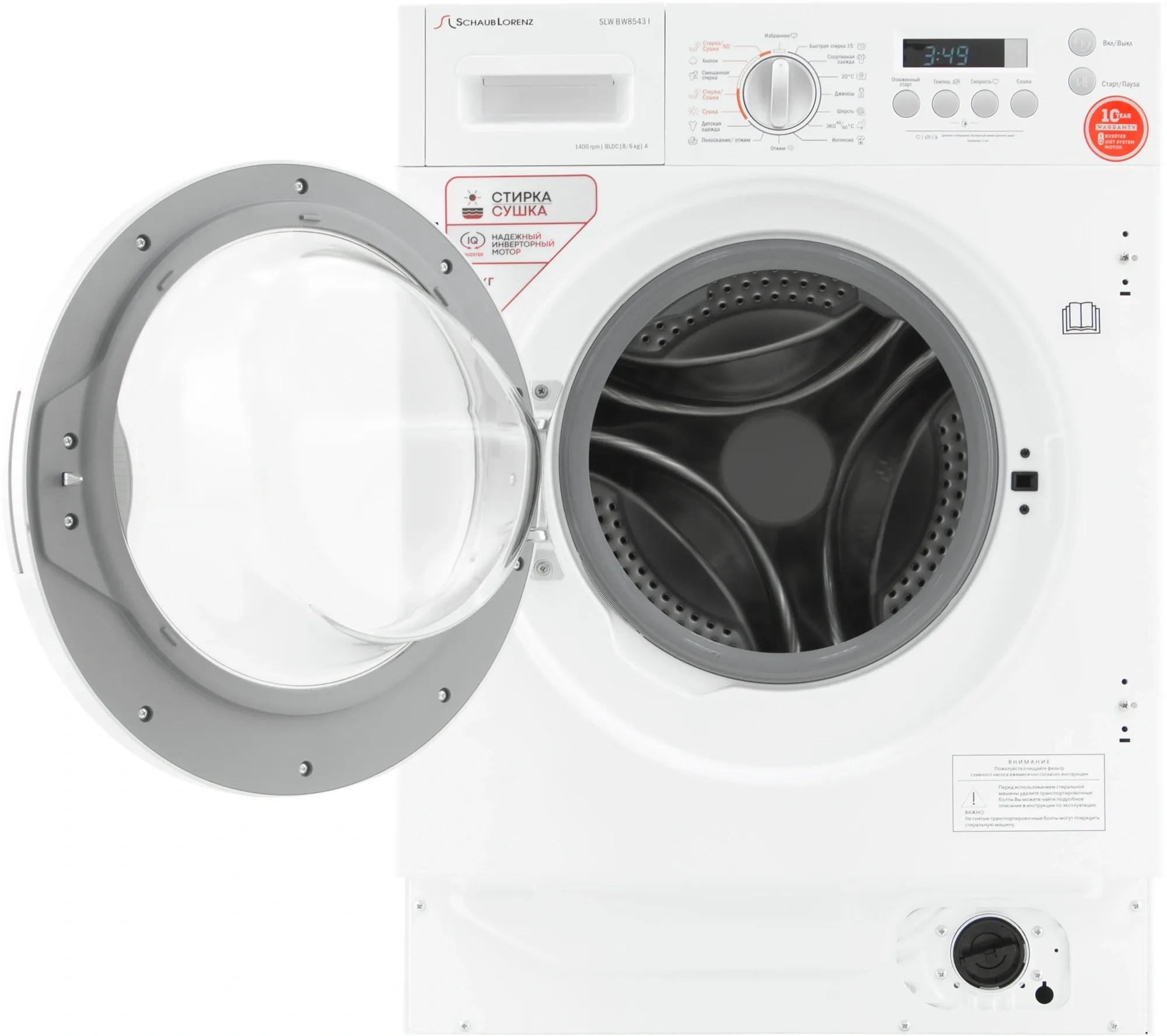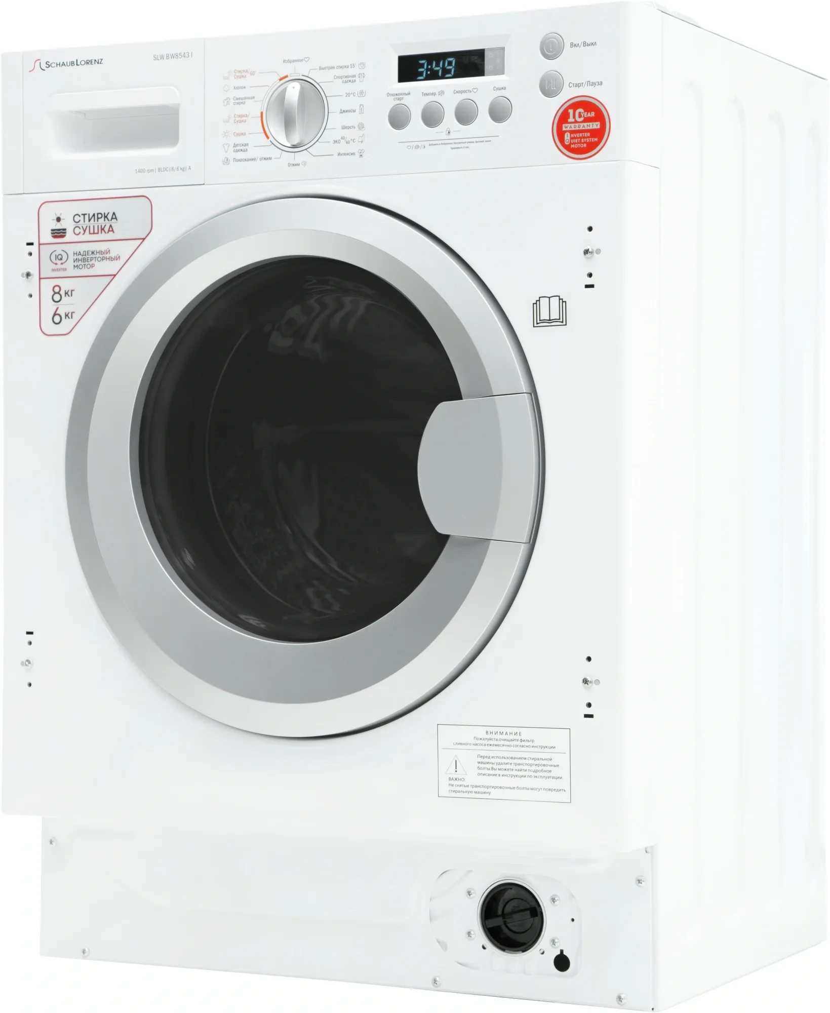 Стиральная машина Schaub Lorenz SLW BW8543 I класс:A загрузка до 8кг отжим:1400об/мин белый инвертор