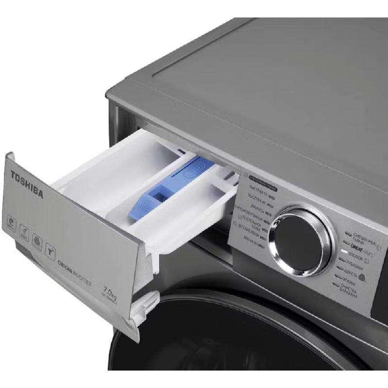 Узкая стиральная машина Toshiba TW-BN80C4RU Grey Metallic обладает габаритами 85х59,5х40 см, весит 60 кг и вмещает до 7 кг белья. Объем барабана — 45,2 л.
