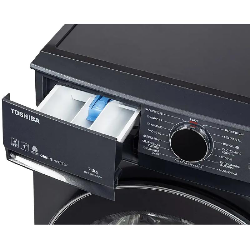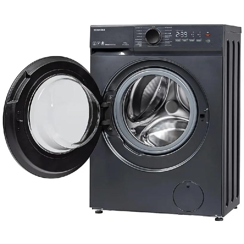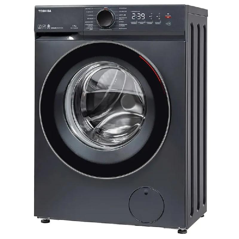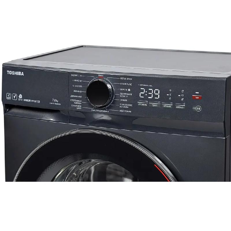 Узкая стиральная машина Toshiba TW-T21BU80UWRU(MG), темно-серая, габаритами 85х59,5х40 см оснащена барабаном объемом 45 л, который вмещает до 7 кг белья.