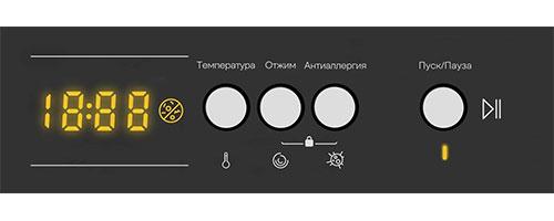 | Программы | Быстрая'15; Быстрая'60; Хлопок; ЭКО 40-60°C; Хлопок 20°C; Цветное белье; Шерсть; Ручная стирка; Антиаллергия; Спортивная одежда; Микс; Джинсы; Предварительная стирка; Полоскание; Отжим/Слив |
