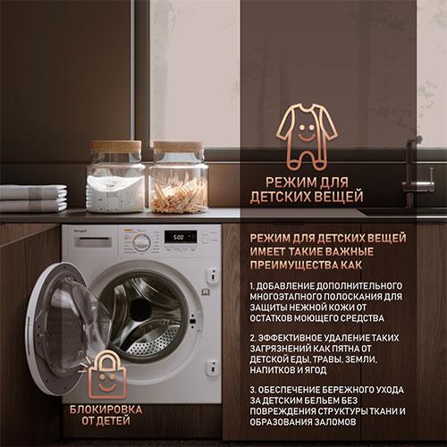 Режим для детского белья добавляет дополнительное полоскание, что особо важно при защите нежной кожи от остатков моющего средства!