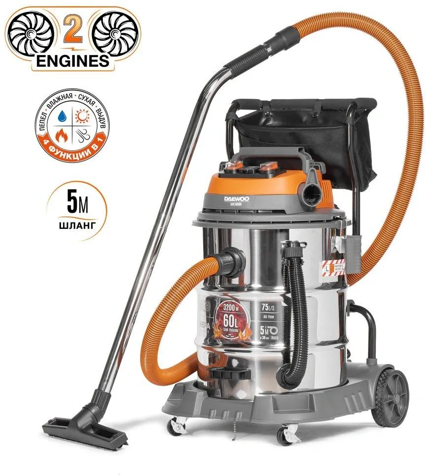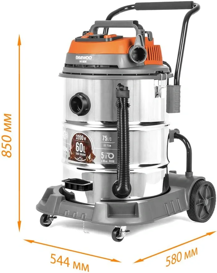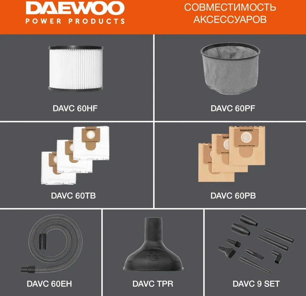 Строительный пылесос Daewoo DAVC 6030S 3200Вт (уборка: сухая/сбор воды/выдув) серебристый