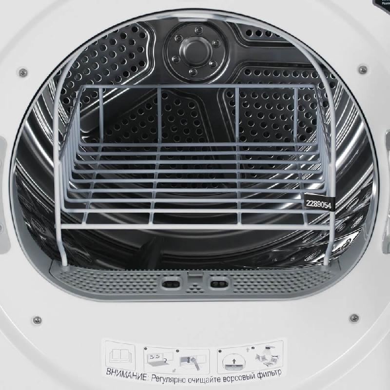 Режимы работы: дополнительная сушка, легкая глажка, освежить (паровой), повседневная сушка, пуховики, пуховые изделия, распушивание шерсти, смешанные ткани, сорочки, спорт, сушка подушек, сушка шерсти, ускоренная сушка