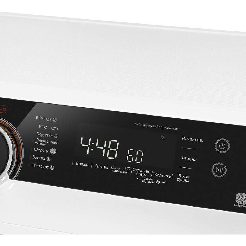 Тихий инверторный двигатель - особая технология задействует электромагнитное поле для вращения барабана. Это снижает уровень шума до 66 дБ , уменьшает энергопотребление и износ. Сушильная машина стала тише и долговечнее.