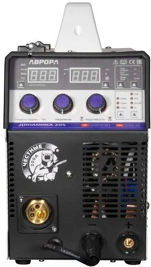 Сварочный полуавтомат Аврора Динамика 205 СИНЕРГЕТИК ПУЛЬС инвертор MIG-MAG/ММА/TIG 5.63кВт