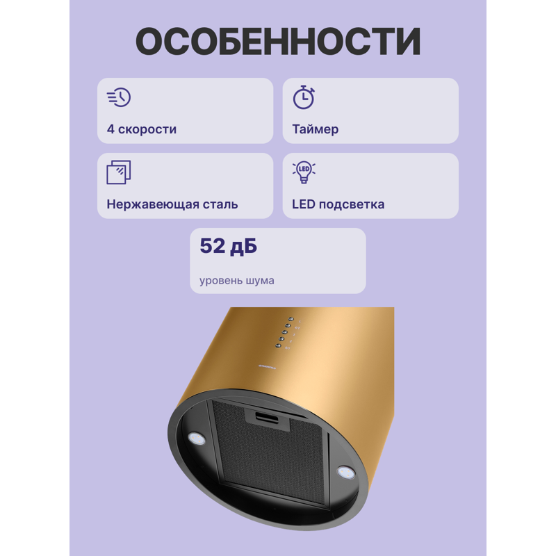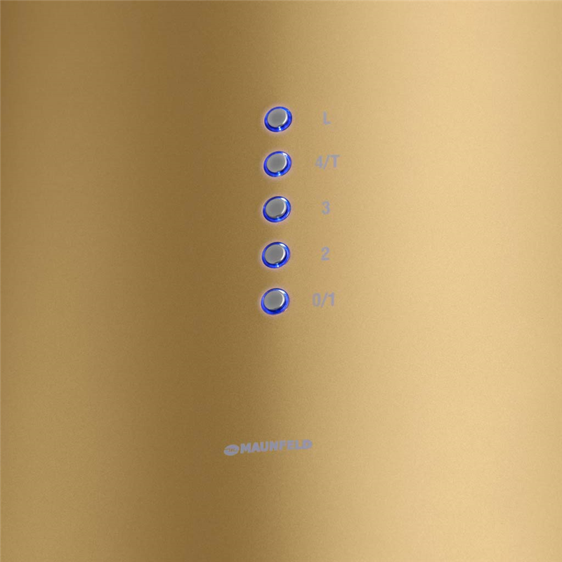 ВЫТЯЖКА MAUNFELD LEE ISLA 39 GOLD/ островная вытяжка с потолочным креплением, 1050 м3, кухни до 40м2, 52дБ, LED, электронное управление, в опции угольный фильтр CF172C, золотая