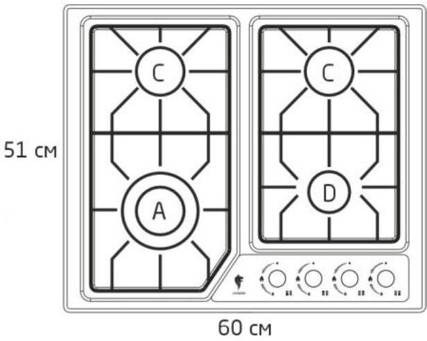 4 горелки Мощность горелок: 3,3(двойное пламя)/1,75/1,75/1,0 кВт Материал панели сталь Материал решетки чугун Размер 60*51 см Газ-контроль Электроподжиг Мощность электроподжига 1,5 Вт Фиксированное положение "Минимальное пламя" Набор форсунок для баллонного газа Тип газа: природный (метан), сжиженный (пропан-бутан) Давление газа G20 2000 Па (20 мбар) Вес 9,7 кг Длина шнура: 0,8 м Напряжение 220-240В,50-60Гц Гарантия 2 года