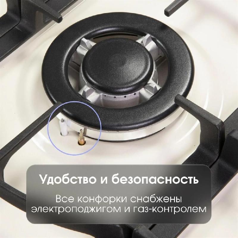 Тип панели газовая Ширина, см 60 Цвет бежевый Количество конфорок 4 Управление фронтальное Переключатели поворотные Материал поверхности эмалированная сталь Комплектация Газовая варочная поверхность - 1 шт. — Штуцеры для подключения к различным газовым источникам - 5 шт. — Дополнительные жиклеры для баллонного газа — 4 шт. — Скоба для крепления к кухонной мебели — 4 шт. — Шурупы для крепления к кухонной мебели — 4 шт. — Клеящаяся уплотнительная прокладка — 1 шт. — Решетки чугунные — 2 шт. — Инструкция по применению. Функциональные особенности Электроподжиг в каждой ручке, тройное кольцо пламени Конструктивные особенности Итальянские грелки Sabaf, увеличенное расстояние между горелками (шире зона готовки), ретро-дизайн, Решетки чугунные Тройное кольцо пламени есть Мощность горелок, Вт 3400; 1880; 1880; 900 Газ-контроль есть Электроподжиг в каждой ручке WOK-горелка есть Матовые колпачки горелок есть Переходники для разных типов газа есть Размеры, см 58х50 Размеры для встраивания (ВхШхГ)
