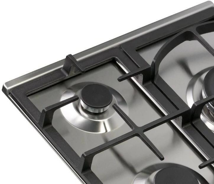| Особенности | чугунные решетки, газ-контроль, конфорка WOK, электроподжиг в поворотной ручке |