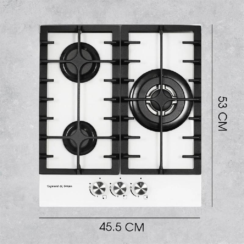 Тип панели газ на стекле Ширина, см 45 Цвет белый Количество конфорок 3 Управление фронтальное Переключатели поворотные Материал поверхности закаленное стекло Решетки чугунные Тройное кольцо пламени есть Мощность горелок, Вт 950; 1880; 3400 Газ-контроль есть Электроподжиг в каждой ручке Матовые колпачки горелок есть Переходники для разных типов газа есть Размеры, см 45,5х51 Размеры для встраивания (ВхШхГ), см 42,5х48 Гарантия 3+2 Страна производства Китай Линейка Slimline