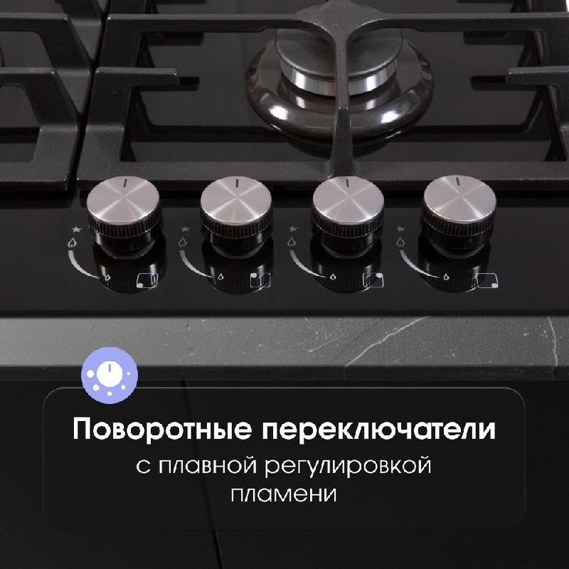 Тип панели газ на стекле Ширина, см 60 Цвет черный Количество конфорок 4 Управление фронтальное Переключатели поворотные Материал поверхности стеклокерамика Решетки чугунные Тройное кольцо пламени есть Мощность горелок, Вт 3.500; 1.750; 1.750; 1000 Газ-контроль есть Электроподжиг в каждой ручке Матовые колпачки горелок есть Переходники для разных типов газа есть Размеры, см 58,4х51 Размеры для встраивания (ВхШхГ), см 55,2х47 Гарантия 3+2 Страна производства Китай Линейка Hi-Tech