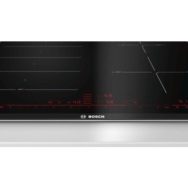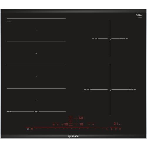 Индукционная встраиваемая варочная панель Bosch PXE675DC1E сделана из стеклокерамики и имеет независимое управление. Сенсорное поле DirectSelect расположено в нижней части, по бокам — две полосы нержавеющей стали. Вверху и внизу панель имеет скошенный профиль для более аккуратной установки, плотного прилегания и хорошей очистки. Зоны индукции размечены, подсвечиваются в процессе работы. Есть возможность блокировки сенсоров во избежание случайного включения детьми.