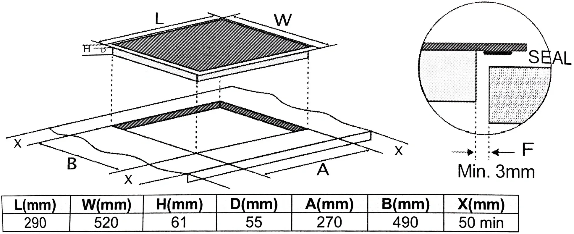 | Размеры для встраивания | 270x40x490мм |