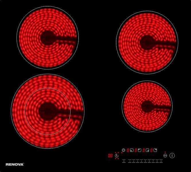 60*52 см. Цвет черный. Максимальная мощность потребления — 6,6 кВт. Количество ступеней мощности 9. Сенсорное управление. Количество зон нагрева - 4 (1.2/1.2/2/2.2 кВт). Двухконтурная конфорка — 1. Таймер 1-99. Автоматическое отключение. Защита от перегрева. Блокировка панели управления. Индикация наличия посуды. Звуковая индикация.