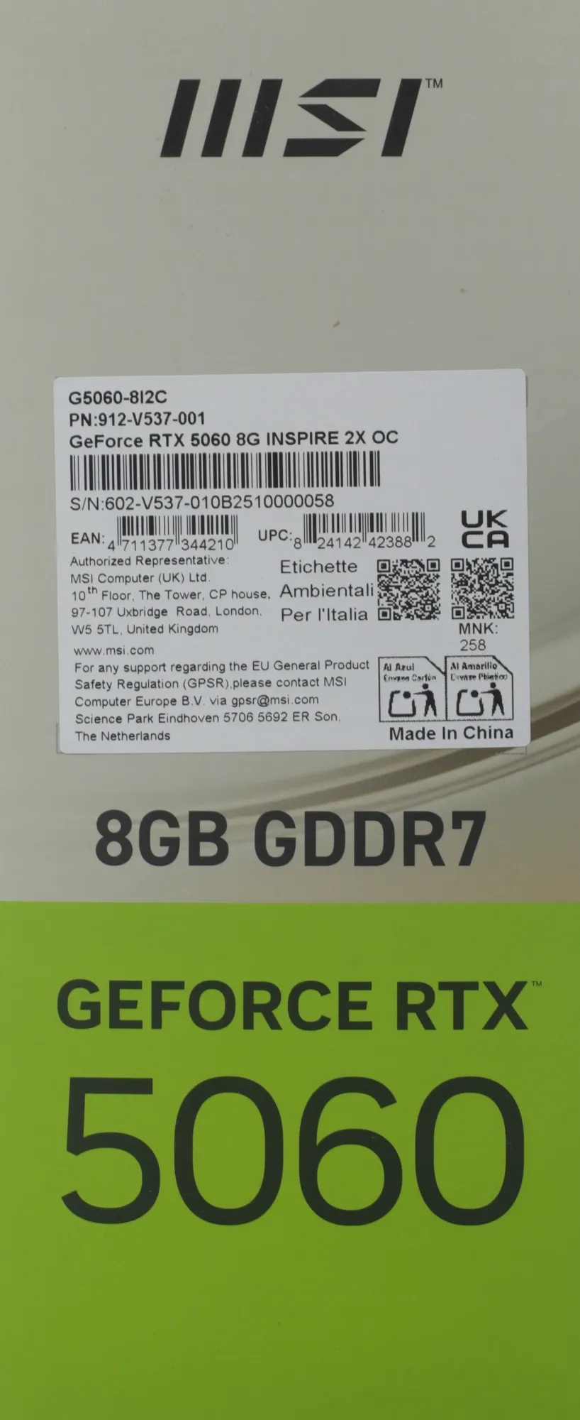 | GPU, модель | GeForce RTX 5060 |