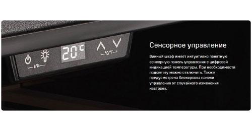 Управляйте всеми функциями винного шкафа с помощью интуитивно-понятной сенсорной панели управления одним касанием пальца.