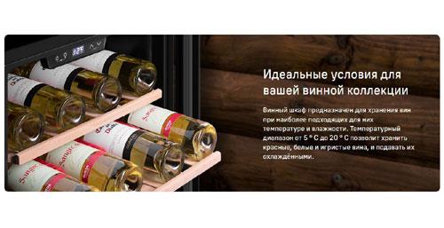Широкий температурный диапазон винного шкафа (от 5 ° C до 20 ° C) позволит хранить красные, белые и игристые вина, а также подготавливать их к подаче.