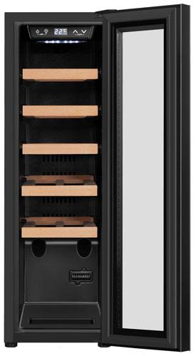 Изысканный дизайн модели делает её абсолютным выбором большинства: корпус выполнен из металла, окрашенной в чёрный цвет. Современная технология освещения зоны позволит вам в любое время эффектно продемонстрировать вашу винную коллекцию гостям. Каждая деталь модели гармонично дополняет друг друга, делая винный шкаф универсальным под любые стили интерьера.