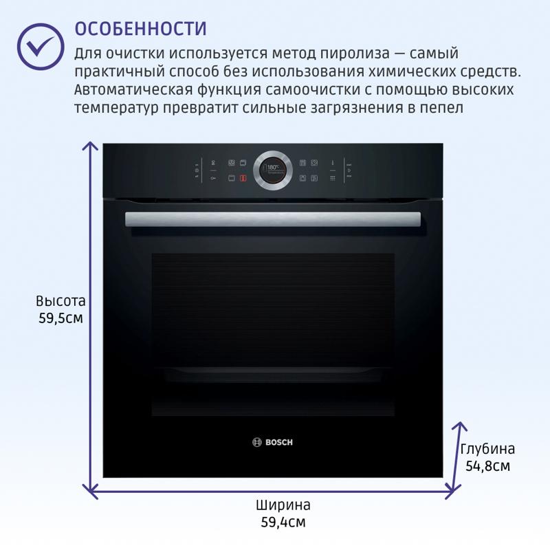 !! 59.5x59.5x54.8 см, 71л, дисплей, 8 режимов, пиролиз, 4 стекла, черный