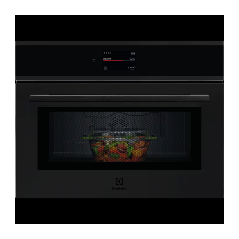 Встраиваемая микроволновая печь Electrolux EVM9E2XT создана для тех, кто ценит минимализм и функциональность: строгий черный корпус с черной фурнитурой выдержан в единой палитре, лаконичные сенсорные панели и аккуратная ручка обеспечивают удобство монтажа и использования, а галогенное освещение добавляет премиального сияния при приготовлении. Объем камеры 44 литра позволяет легко размещать посуду разных форм, а эмаль внутри гарантирует простую очистку. Комбинация мощных микроволн и гриля обеспечивает равномерный нагрев и хрустящую корочку, функции размораживания, растапливания и разогрева работают в автоматическом режиме, экономя время. Быстрый запуск и звуковой сигнал по завершении упрощают контроль, а таймер с автоматическим отключением добавляет безопасности при длительном приготовлении.