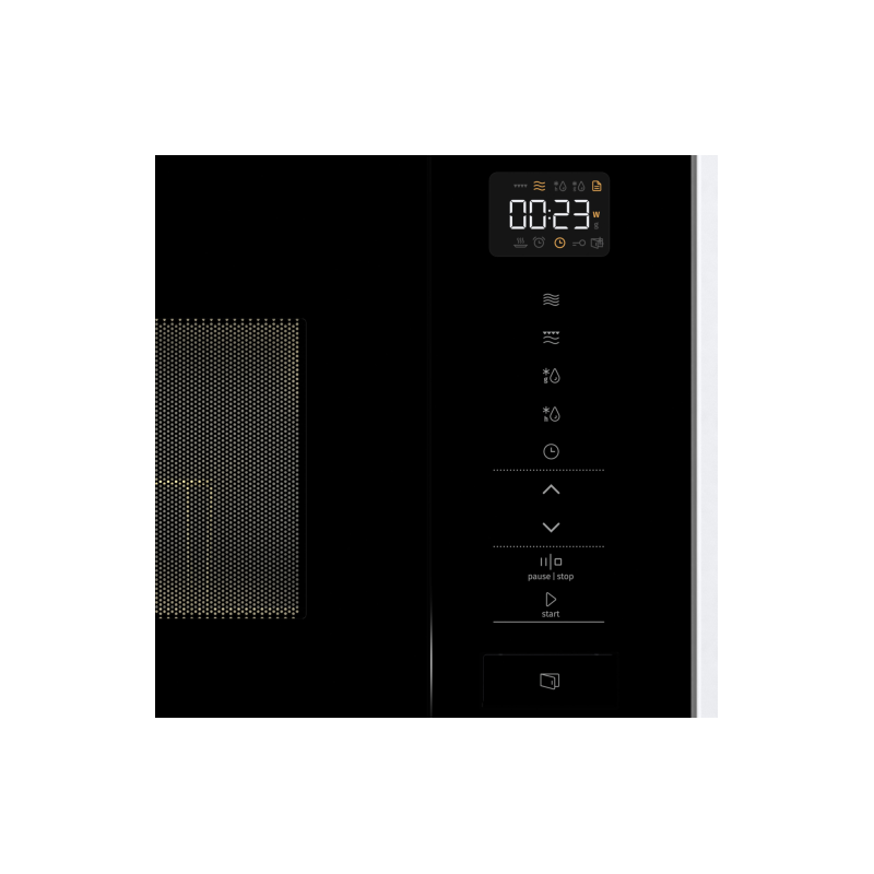 Модель оснащена пятью уровнями мощности, что обеспечивает точный контроль над процессом приготовления. Встроенные восемь автопрограмм позволяют легко приготовить разнообразные блюда — от разогрева до сложных рецептов. Сенсорное управление делает работу с техникой интуитивно понятной, а яркий дисплей отображает все необходимые параметры и настройки. Предусмотренная функция гриля позволяет получать аппетитную корочку и равномерно поджаривать продукты. Поворотный стол обеспечивает равномерное прогревание и удобство использования. Технология AquaClean значительно облегчает очистку внутренней камеры — достаточно просто протереть поверхность влажной тряпкой, чтобы избавиться от загрязнений и запахов.